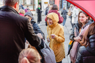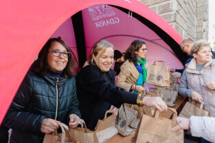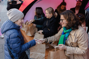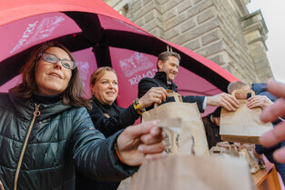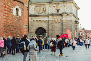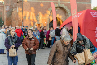 Gdańsk, Brama Wyżynna. Tysiąc opakowań cebulek kwiatowych dla gdańszczan. W wydarzeniu brała udział prezydent Gdańska, Aleksandra Dulkiewicz.