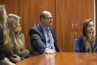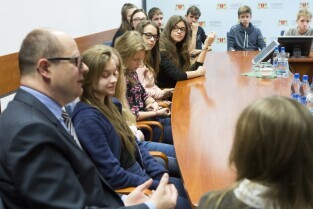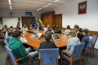 Urząd Miejski w Gdańsku. Spotkanie uczniów Gimnazjum nr 3 w Gdańsku Chełmie z Prezydentem Gdańska Pawłem Adamowiczem