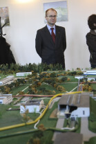 Ujęcie wody w Straszynie zarządzane przez spółkę Saur Neptun Gdańsk. Nz. przy makiecie zakładu Maciej Lisicki (z-ca Prezydenta Gdańska)