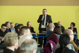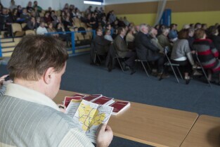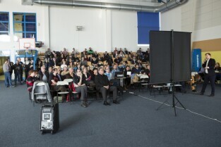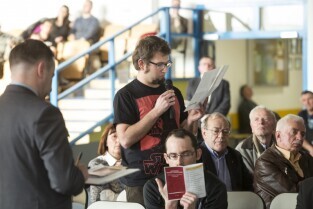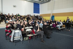 Spotkanie konsultacyjne z mieszkańcami dotyczące rozbudowy układu transportowego Gdańska Południe w latach 2014-2020. Gdańsk Ujeścisko, Szkoła Podstawowa nr 12