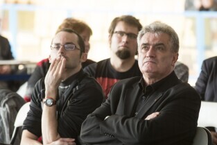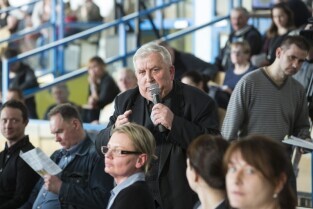 Spotkanie konsultacyjne z mieszkańcami dotyczące rozbudowy układu transportowego Gdańska Południe w latach 2014-2020. Gdańsk Ujeścisko, Szkoła Podstawowa nr 12. Nz. Przewodniczący Rady Miasta Gdańska Bogdan Oleszek