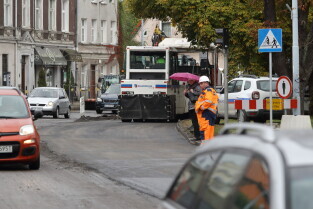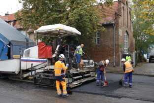 Układanie nowej nawierzchni na ulicy Stary Rynek Oliwski