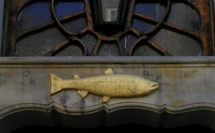 „Der Lachs” (łosoś) zdobi portal Domu pod Łososiem. Ul. Szeroka 52.