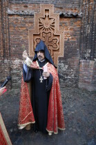 Uroczystość poświęcenia „chaczkara” - kamiennego krzyża pochodzącego z Armenii w Zaułku Ormiańskim przy kościele św. Piotra i Pawła.