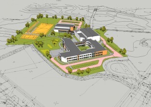Wizualizacja - projekt szkoły w Kowalach - wspólnej inwestycji oświatowej Kolbud, Pruszcza Gdańskiego i Gdańska.