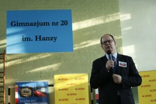 Podpisanie umowy na budowę szesnastego boiska w ramach programu Junior Gdańsk 2012, którego sponsorem będzie firma LOTOS S.A. Gimnazjum nr 20 im. Hanzy w Gdańsku-Oliwie. Nz. Prezes Grupy LOTOS Paweł Olechnowicz