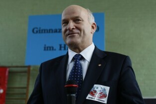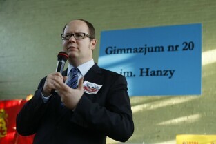 Podpisanie umowy na budowę szesnastego boiska w ramach programu Junior Gdańsk 2012, którego sponsorem będzie firma LOTOS S.A. Gimnazjum nr 20 im. Hanzy w Gdańsku-Oliwie. Nz. Prezydent Gdańska Paweł Adamowicz