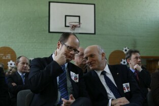 Podpisanie umowy na budowę szesnastego boiska w ramach programu Junior Gdańsk 2012, którego sponsorem będzie firma LOTOS S.A. Gimnazjum nr 20 im. Hanzy w Gdańsku-Oliwie. Nz. Prezydent Gdańska Paweł Adamowicz i Prezes Grupy LOTOS Paweł Olechnowicz (po lewej