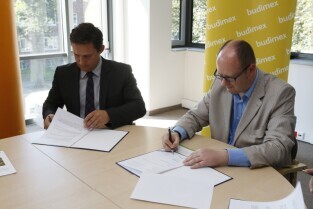Podpisanie umowy na III etap Trasy Słowackiego, który przebiegać będzie w sąsiedztwie stadionu PGE Arena i połączy al. Hallera z al. Marynarki Polskiej. Siedziba spółki Gdańskie Inwestycje Komunalne. Nz. od lewej: Dyrektor gdańskiego oddziału firmy Budimex Dariusz Taraszkiewicz, Prezydent Gdańska Paweł Adamowicz