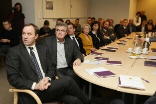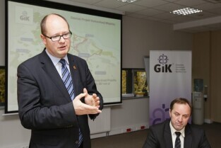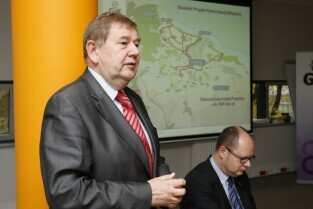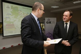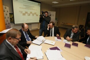 Podpisanie umowy na wykonanie inwestycji "Nowa Łódzka". Umowę podpisali m.in. Prezydent Gdańska Paweł Adamowicz, Prezes GIK Ryszard Trykosko (nz), Prezes MTM SA Marek Ignatowski, Wiceprezes Trakcji Polskiej Tadeusz Bogdan. Gdańsk, siedziba GIK 2012
