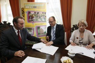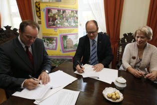 Podpisanie umowy o dofinansowanie ze środków unijnych rewitalizacji Nowego Portu. Umowę podpisali: Marszałek Woj. Pomorskiego Mieczysław Struk (po lewej), Prezydent Gdańska Paweł Adamowicz (po środku) i Skarbnik Gdańska Teresa Blacharska