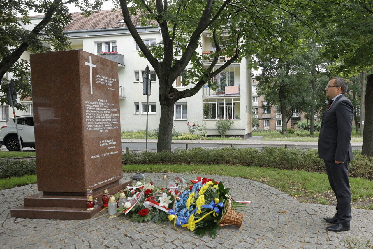 Gdańsk. Narodowy Dzień Pamięci Ofiar Ludobójstwa dokonanego przez ukraińskich nacjonalistów na obywatelach II Rzeczypospolitej Polskiej Złożenie kwiatów przy Pomniku Pamięci Ofiar Eksterminacji Ludności Polskiej na Wołyniu.