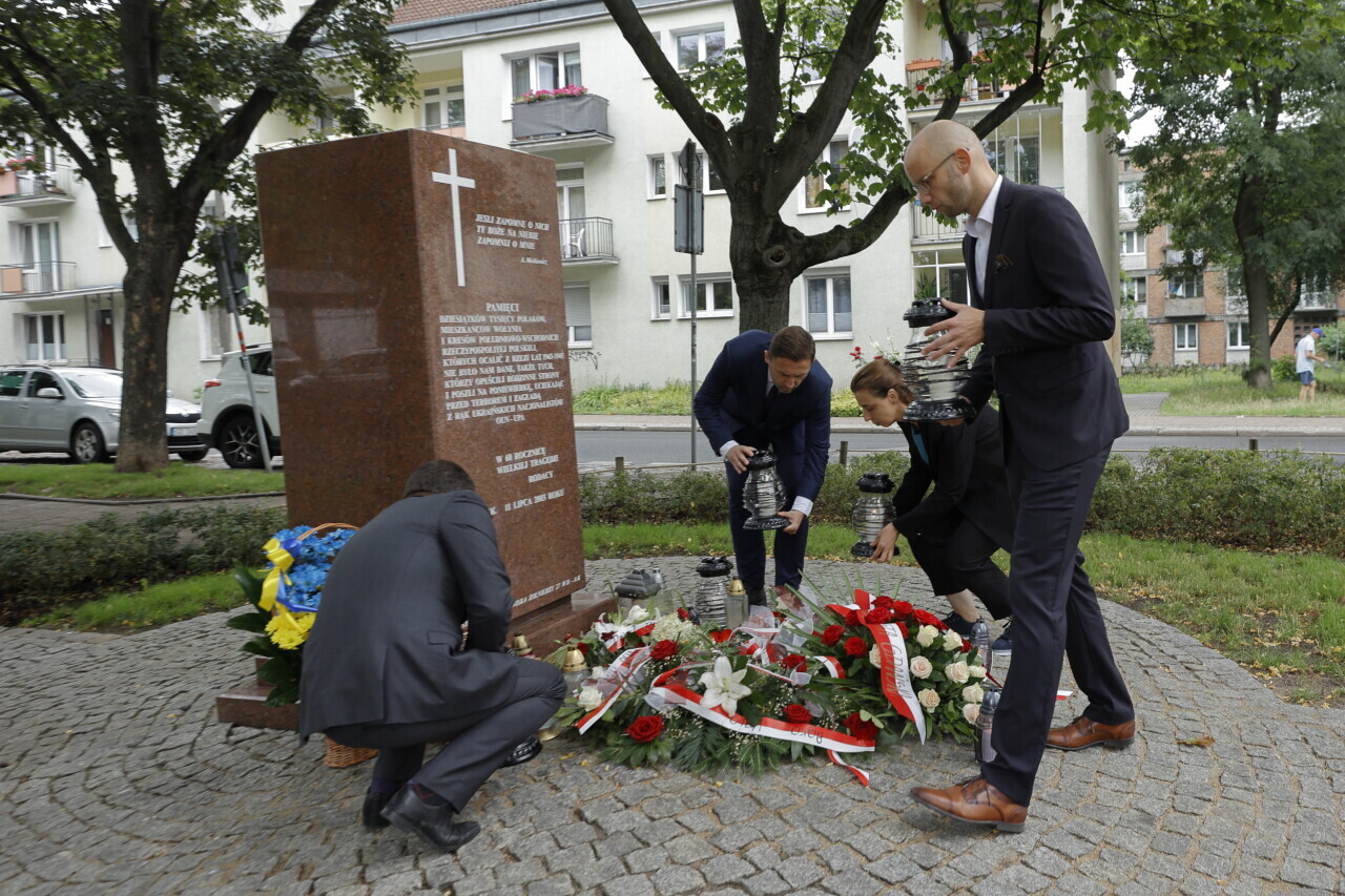 Gdańsk. Narodowy Dzień Pamięci Ofiar Ludobójstwa dokonanego przez ukraińskich nacjonalistów na obywatelach II Rzeczypospolitej Polskiej Złożenie kwiatów przy Pomniku Pamięci Ofiar Eksterminacji Ludności Polskiej na Wołyniu.