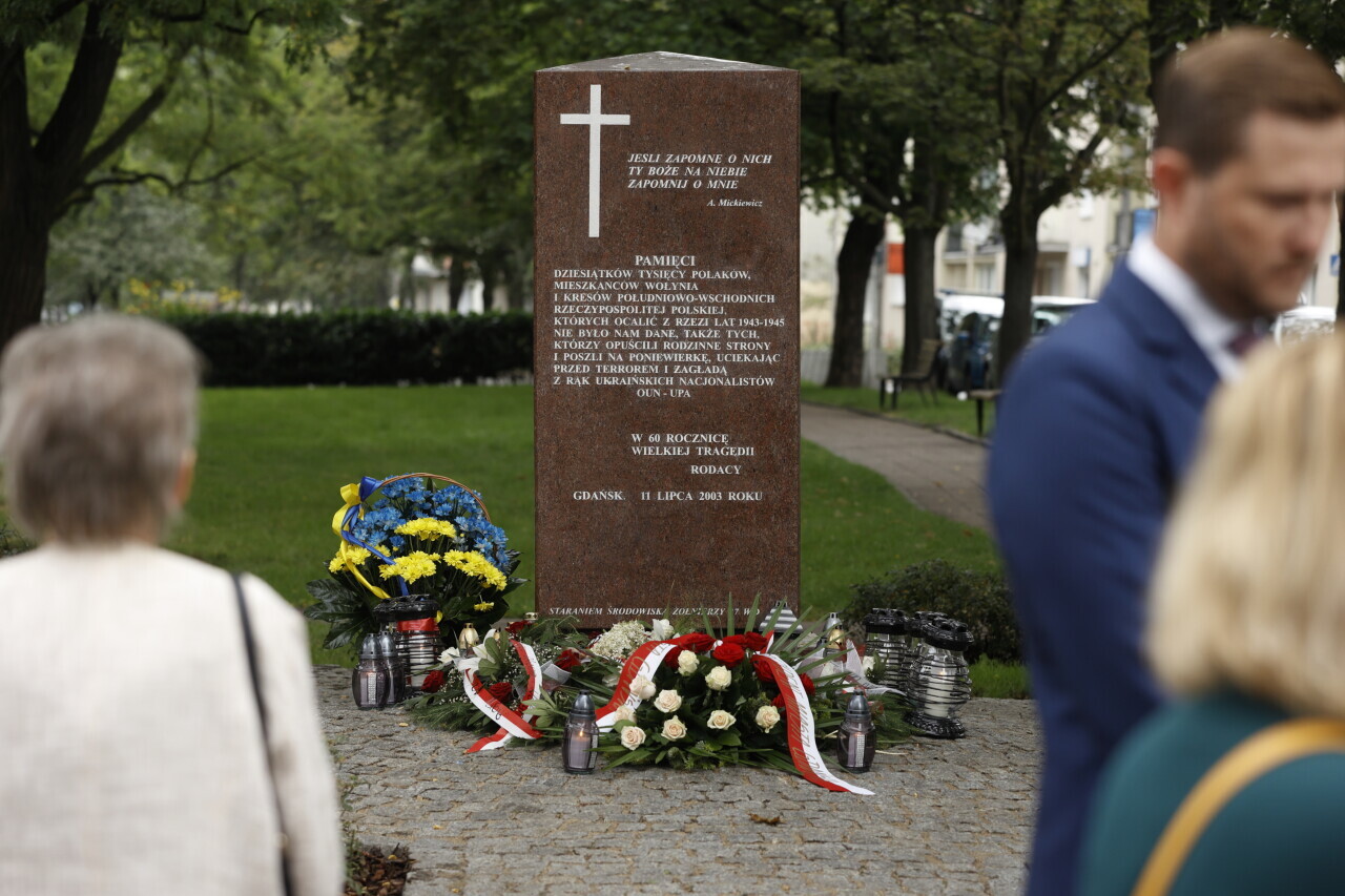 Gdańsk. Narodowy Dzień Pamięci Ofiar Ludobójstwa dokonanego przez ukraińskich nacjonalistów na obywatelach II Rzeczypospolitej Polskiej Złożenie kwiatów przy Pomniku Pamięci Ofiar Eksterminacji Ludności Polskiej na Wołyniu.