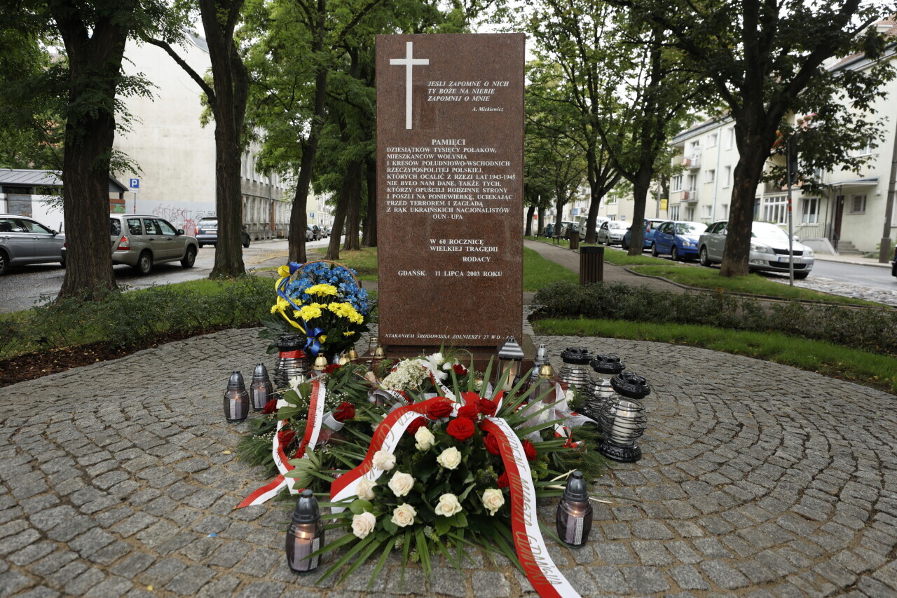 Gdańsk. Narodowy Dzień Pamięci Ofiar Ludobójstwa dokonanego przez ukraińskich nacjonalistów na obywatelach II Rzeczypospolitej Polskiej Złożenie kwiatów przy Pomniku Pamięci Ofiar Eksterminacji Ludności Polskiej na Wołyniu.