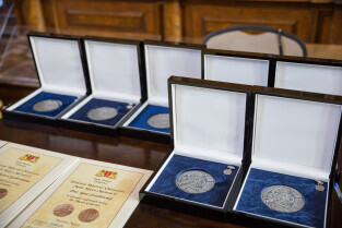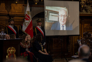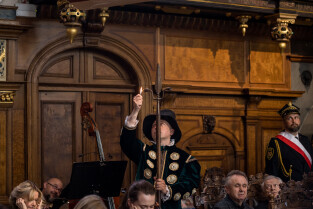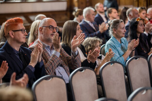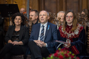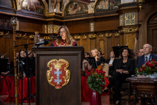 Gdańsk. Uroczysta LI sesja Rady Miasta Gdańska w Dworze Artusa, na której wręczono medale.