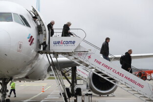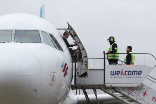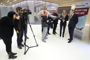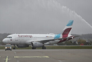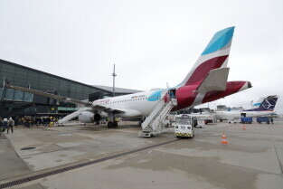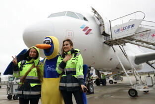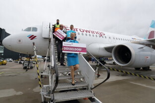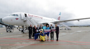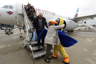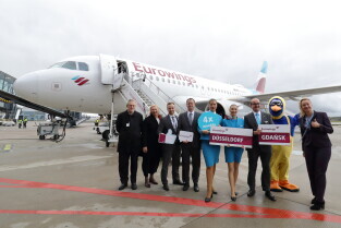 Gdańsk, Port Lotniczy Gdańsk im. Lecha Wałęsy. Uroczysta inauguracja nowego połączenia lotniczego Eurowings z Gdańska do Dusseldorfu.