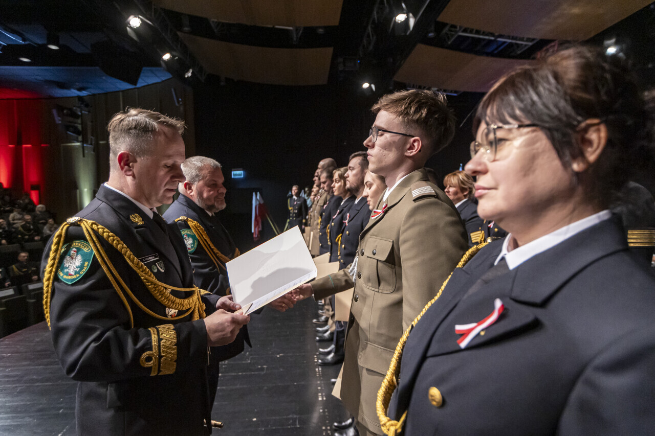 Gdańsk. Wojewoda Pomorska Beata Rutkiewicz, Wojewoda Zachodniopomorski Adam Rudawski, Wicemarszałek województwa pomorskiego Marcin Skwierawski oraz Zastępca prezydenta ds. mobilności i bezpieczeństwa Piotr Borawski wzięli udział w Uroczystej Zbiórce Straży Granicznej z okazji Narodowego Święta Niepodległości, która odbyła się w Muzeum II Wojny Światowej