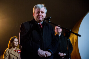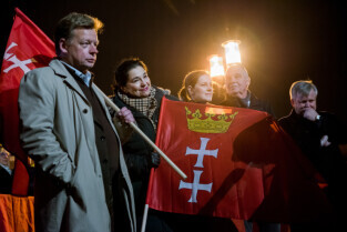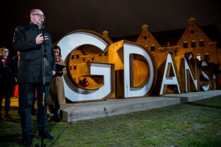 Gdańsk, Ołowianka. Uroczyste odsłonięcie napisu GDAŃSK. Nz. Prezydent Gdańska Paweł Adamowicz