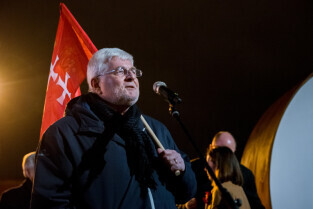 Gdańsk, Ołowianka. Uroczyste odsłonięcie napisu GDAŃSK. Nz. radny Marek Bumblis