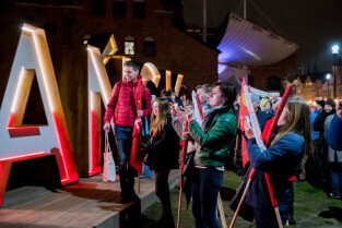 Gdańsk, Ołowianka. Uroczyste odsłonięcie napisu GDAŃSK. Nz. Kaja Pobereżny