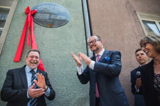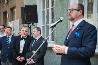 Gdańsk, ul. Garbary. Uroczyste odsłonięcie tablicy pamiątkowej Leopolda von Wintera