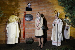 Gdańsk. Uroczyste odsłonięcie tablicy upamiętniającej ks. Eugeniusza Dutkiewicza, założyciela pierwszego hospicjum w Gdańsku i jednego z prekursorów ruchu hospicyjnego w naszym kraju.