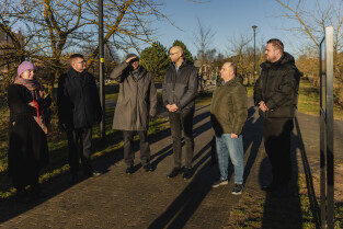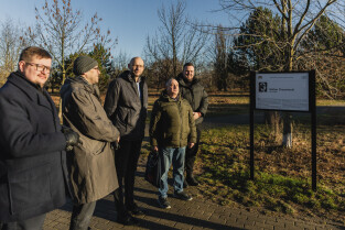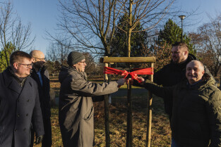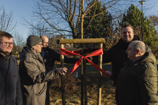 Gdańsk, Park Millenium. Uroczyste odsłonięcie tablicy upamiętniającej postać Stefana Drzewieckiego. W wydarzeniu wzięli udział m.in.:Piotr Kryszewski, Dyrektor Zarządzający ds. Zielonego Gdańska, radni miasta, Marcin Makowski i Marcin Mickun