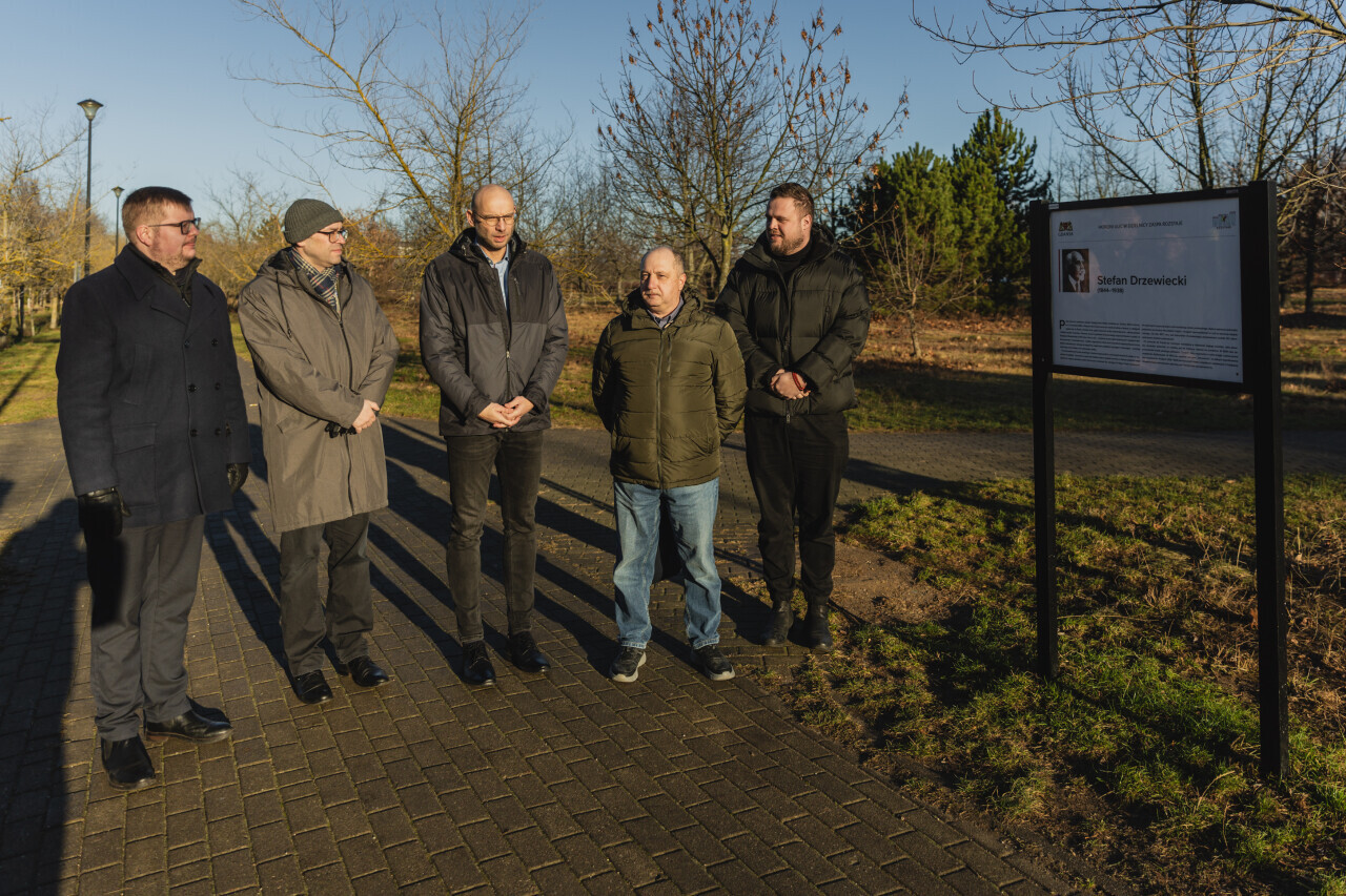 Gdańsk, Park Millenium. Uroczyste odsłonięcie tablicy upamiętniającej postać Stefana Drzewieckiego. W wydarzeniu wzięli udział m.in.:Piotr Kryszewski, Dyrektor Zarządzający ds. Zielonego Gdańska, radni miasta, Marcin Makowski i Marcin Mickun