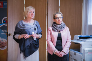 Gdańsk, ul. Piekarnicza 16. Uroczyste otwarcie Centrum Pracy Socjalnej nr 9. Nz. Małgorzata Niemkiewicz dyrektor MOPR i Jolanta Kruk: Kierownik CPS 9