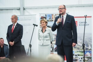 Gdańsk. Kowale. Uroczyste otwarcie Szkoły Metropolitalnej. Nz. (od prawej) Paweł Adamowicz Prezydent Miasta Gdańska, Magdalena Kołodziejczak - Wójt Gminy Pruszcz Gdański i Leszek Grombala - Wójt Gminy Kolbudy