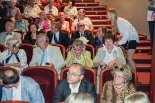 Gdańsk. Teatr Wybrzeże. Uroczyste otwarcie V Światowego Zjazdu Gdańszczan. Nz. prof. Małgorzata Dymnicka