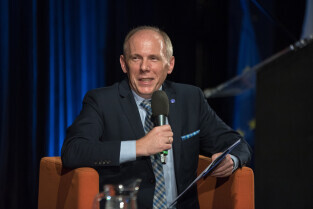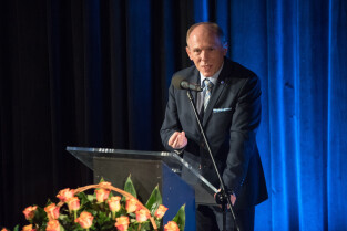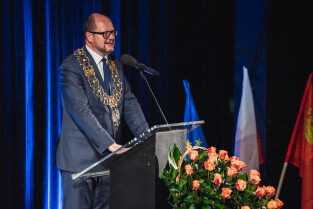 Gdańsk. Teatr Wybrzeże. Uroczyste otwarcie V Światowego Zjazdu Gdańszczan. Nz. Prezydent Gdańska Paweł Adamowicz