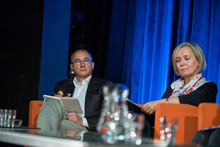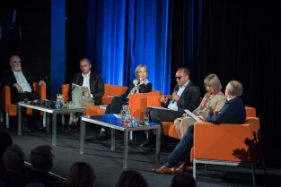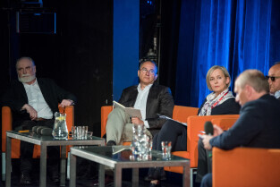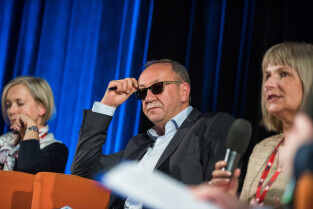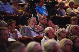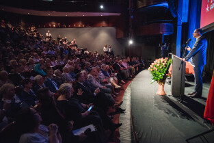 Gdańsk. Teatr Wybrzeże. Uroczyste otwarcie V Światowego Zjazdu Gdańszczan. Nz. prof. Stefan Chwin