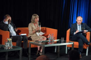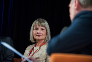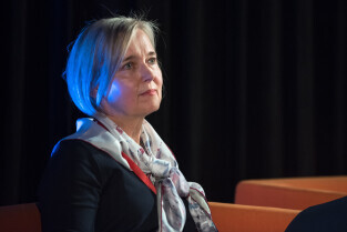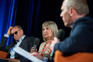 Gdańsk. Teatr Wybrzeże. Uroczyste otwarcie V Światowego Zjazdu Gdańszczan. Nz. prof. Ewa Rewers