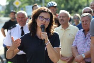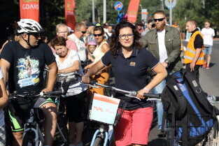 Wyspa Sobieszewska. Uroczyste otwarcie nowej 4,5 kilometrowej drogi rowerowej. Nz. Prezydent Gdańska Aleksandra Dulkiewicz.