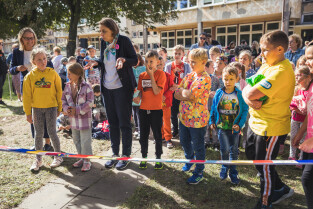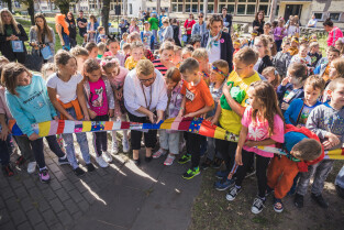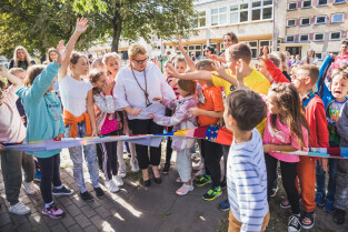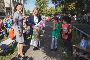 Gdańsk, ul. Sienna. Uroczyste otwarcie placu zabaw "Kierunek- podwórko 61" z udziałem wiceprezydent Moniki Chabior
