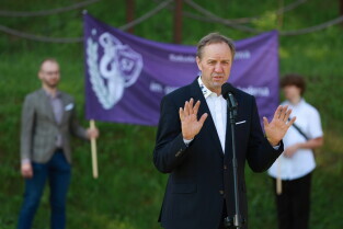 Gdańsk. Święto Wolności i Praw Człowieka. Uroczyste podniesienie flagi polskiej na Górze Gradowej.