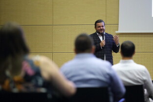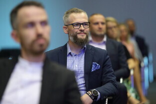 Gdańsk, AmberExpo. Uroczyste podsumowanie akcji "Posiłek za wysiłek". Nz. Paweł Orłowski - wiceprezes zarządu AmberExpo.