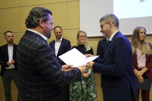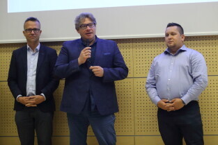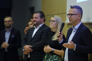 Gdańsk, AmberExpo. Uroczyste podsumowanie akcji "Posiłek za wysiłek". Nz. Jacek Herold - właściciel Amber Side, Rafał Brzykcy - właściciel Bistro Dwa Smaki i Tomasz Limon - Prezes Zarządu organizacji Pracodawców Pomorza.