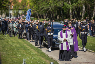 Gdańsk, Cmentarz Srebrzysko. Uroczyste pożegnanie śp. Jacka Starościaka, byłego prezydenta Gdańska