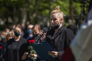 Gdańsk, Cmentarz Srebrzysko. Uroczyste pożegnanie śp. Jacka Starościaka, byłego prezydenta Gdańska. Nz. Prezydent Gdańska Aleksandra Dulkiewicz