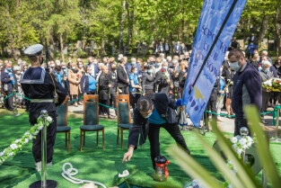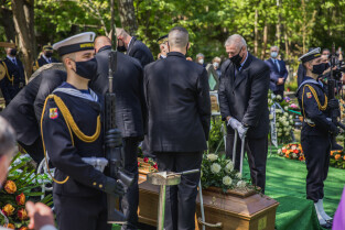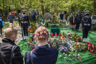 Gdańsk, Cmentarz Srebrzysko. Uroczyste pożegnanie śp. Jacka Starościaka, byłego prezydenta Gdańska