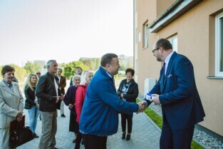 Uroczyste wręczenie kluczy do mieszkań przy ul. Madalińskiego na gdańskim Chełmie. Drobny poczęstunek.