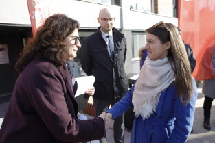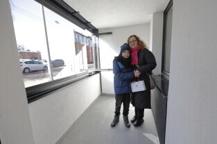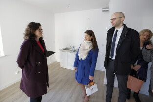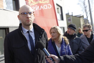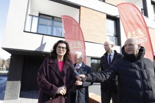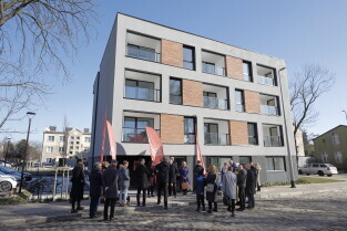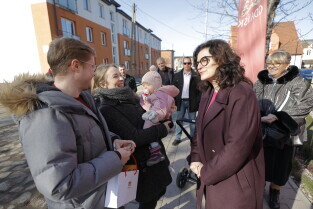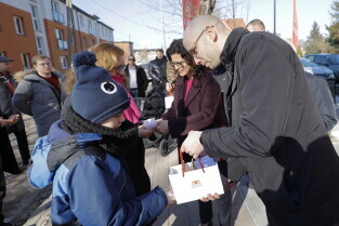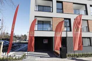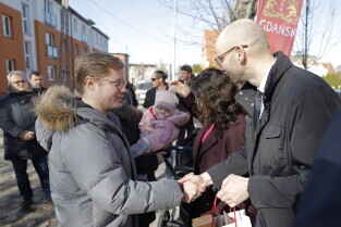 Gdańsk. Uroczyste wręczenie kluczy najemcom budynku TBS przy ul. Niecałej w dzielnicy Gdańsk Letnica.