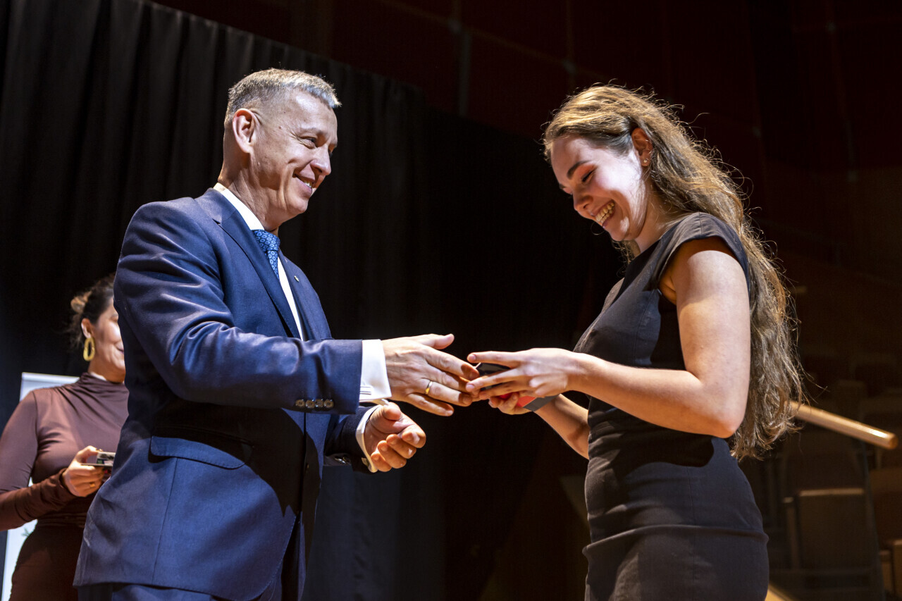 Gdańsk. Wicewojewoda pomorski Anna Olkowska-Jacyno, Prezydent Gdyni Aleksandra Kosiorek oraz Piotr Borawski, Z-ca Prezydenta ds. mobilności i bezpieczeństwa uczestniczyli w uroczystości z okazji nadania praw do wykonywania zawodu Lekarza i Lekarza Dentysty., która odbyła się w Filharmonii Bałtyckiej na Ołowiance