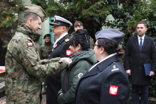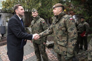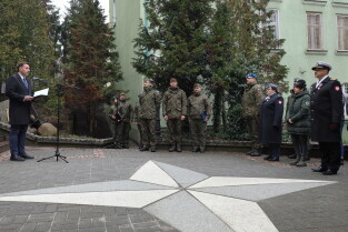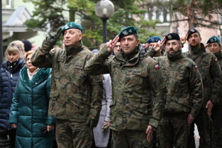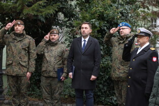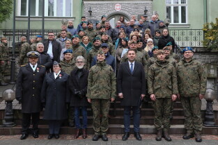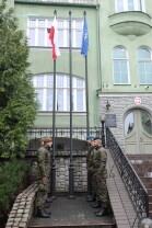 Gdańsk. Uroczystość 25-lecia wstąpienia polski do NATO w Centralnym Wojskowym Centrum Rekrutacji w Gdańsku, z udziałem oficerów Garnizonu Gdańskiego WP i wiceprezydenta Gdańska Piotra Borawskiego.