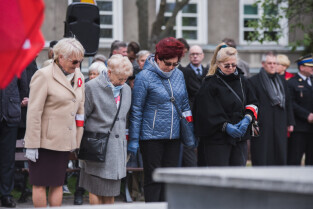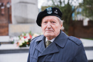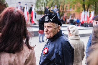 Gdańsk, Pomnik Tym co za polskość Gdańska. Uroczystość 72. rocznicy zakończenia II wojny światowej. Nz. Mieczysław Czyczyro