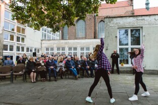 Uroczystość otwarcia kompleksu boisk. Gimnazjum nr 8, Żabi Kruk 5. Nz po lewo dyrektor Mirosława Kowal. Pezydent Gdańska Paweł Adamowicz.