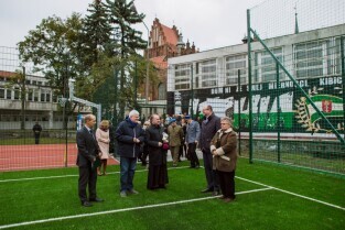 Uroczystość otwarcia kompleksu boisk. Gimnazjum nr 8, Żabi Kruk 5. Nz Pezydent Gdańska Paweł Adamowicz.